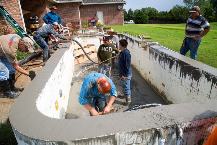 The area around the pool is backfilled and usually a concrete deck structure is constructed around the perimeter